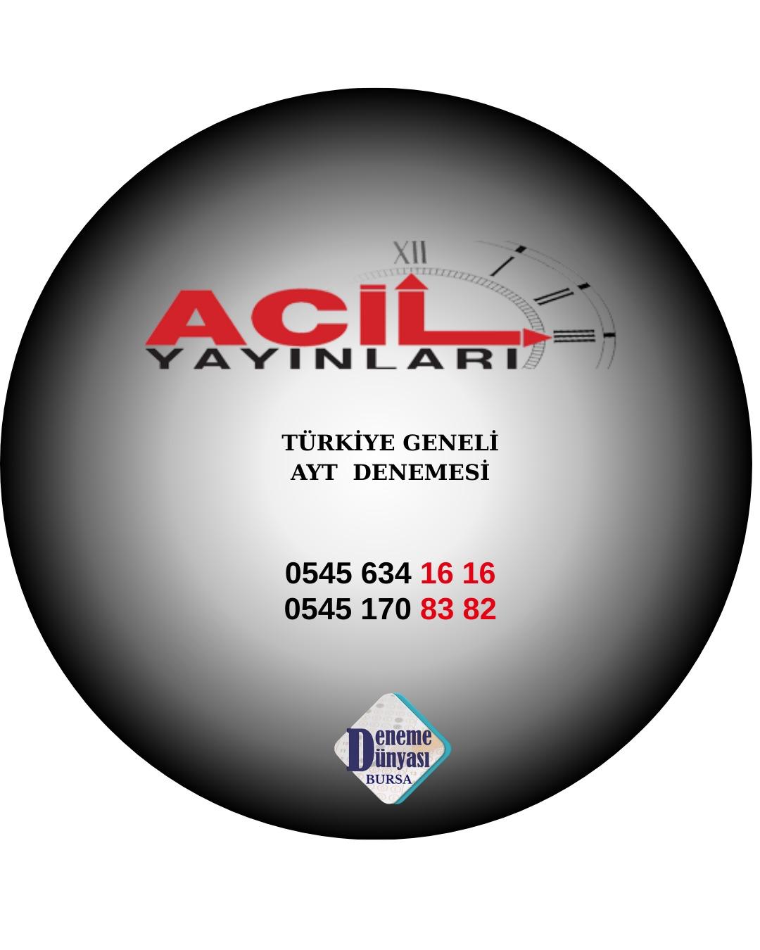 ACİL YAYINLARI DENEME DEPOSU T.G. YKS-1 AYT